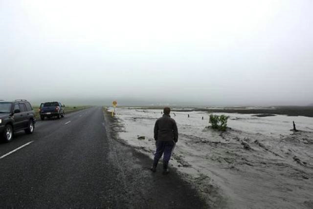„Þetta er svo gígantískt mál að það er engu lagi líkt,“ segir Ólafur Eggertsson, bóndi á Þorvaldseyri undir Eyjafjöllum, í viðtali við mbl.is. Hann segir að mikið grugg og mikill leir sé í flóðinu og að það hafi borist yfir ræktað land.
